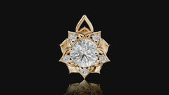 A lady's 14K yellow gold and diamond pendant/necklace. This lovely necklace features a natural round diamond center stone in a 5 prong setting. Around the center stone the earrings have a delicate floral design with both open wire and solid petal elements. There are 5 round accent diamonds prong set in the open wire petals. The pendant is suspended on a 16 inch diamond cut cable chain and the set weighs a total of 3.0 grams.